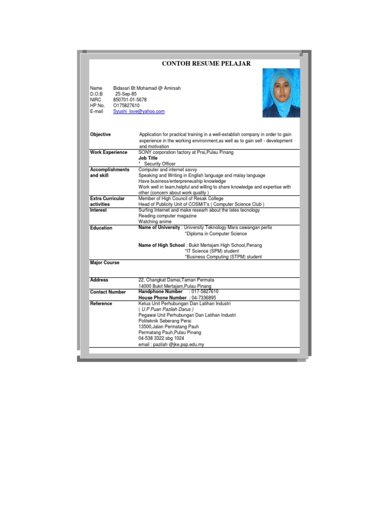 Contoh Resume Pelajar Politeknik Apapun Ada